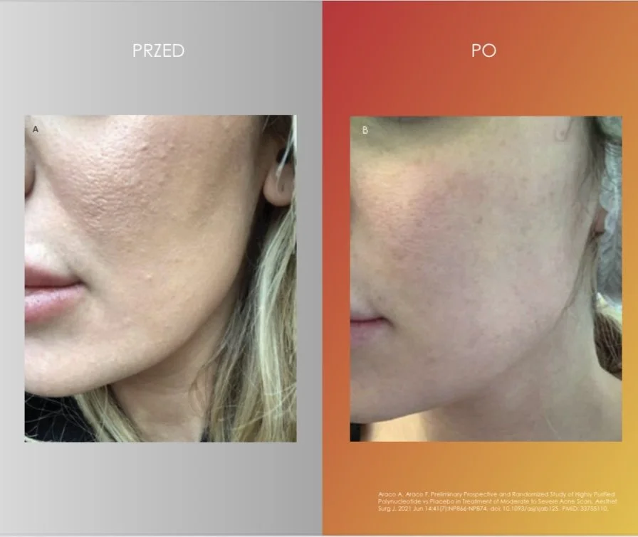 Biostymulator zawierający RH kolagen, który jest identyczny z ludzkim. Ze względu na naturalny skład nie wywołuje reakcji alergicznych. Zabieg stymulujący kolagen pozwala osiągnąć naprawdę spektakularne efekty. Pozwala odmłodzić skórę twarzy, a także okolic ust i szyi, dekoltu oraz dłoni.